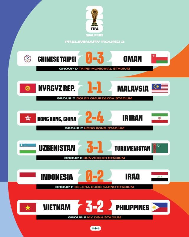 第六小组的印尼队在6日0比2输给伊拉克队后,仍以7分排名小组第二,末轮主场迎战菲律宾队,只要取胜拿到3分,就可以历史性地首次晋级18强赛。以6分紧随印尼队之后的越南队理论上也有出线希望,但除了自身必须客场击败伊拉克队外,还要指望菲律宾队阻击印尼队。